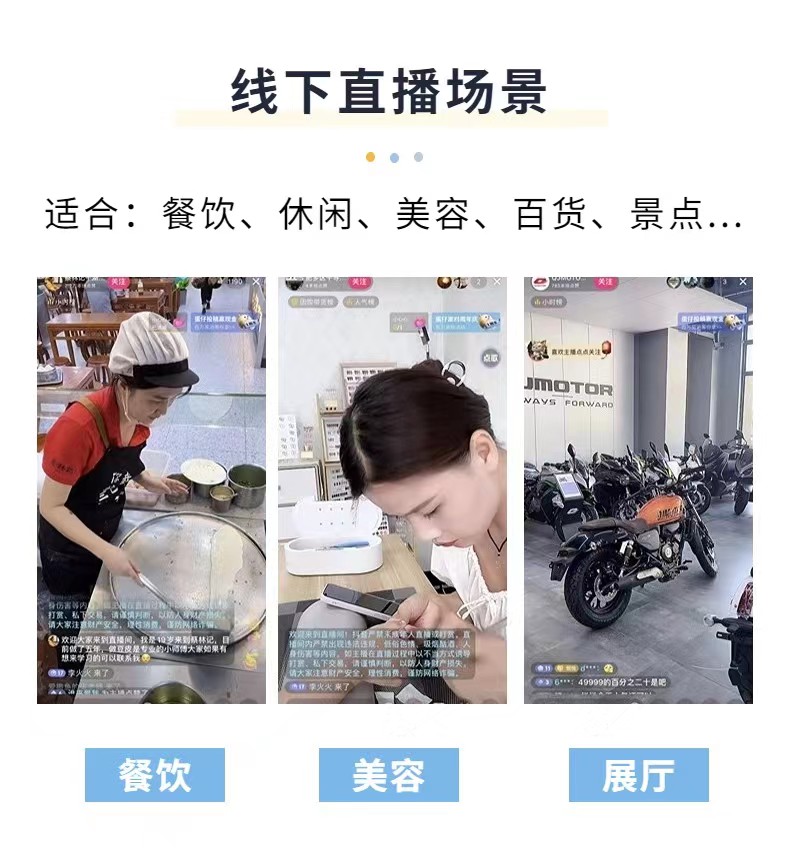 每个商家都可以实现自动直播,只需录入直播话术,找到合适的场景,架设好手机即可开播!超低门槛,家家都能播!